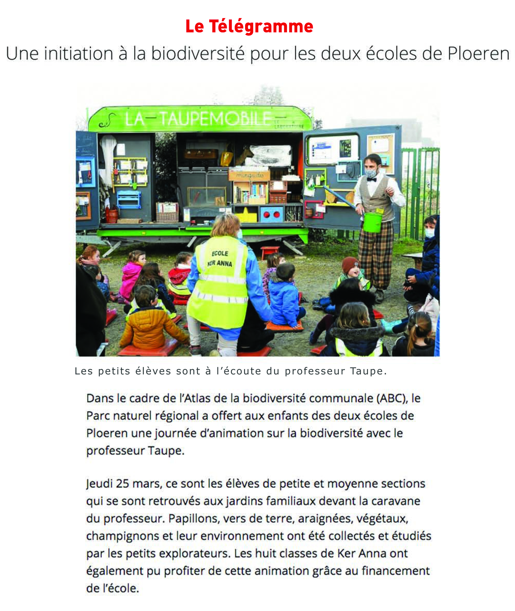 Le Télégramme Une initiation à la biodiversité pour les deux écoles de Ploeren 26 03 21_1 J’aime chargement…